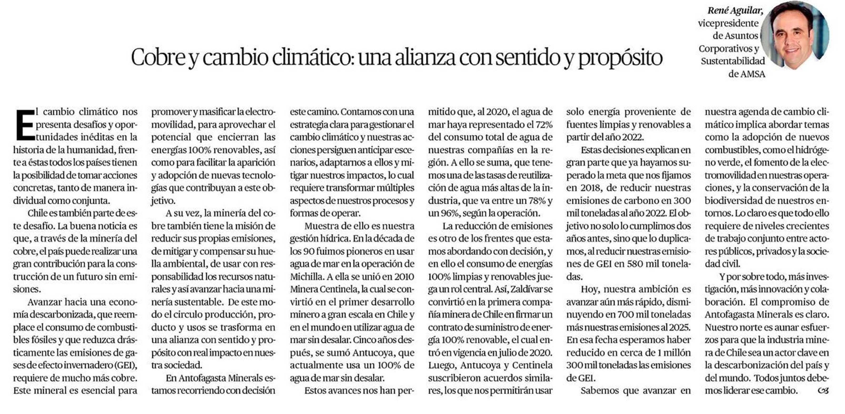 (El Merurio Antofagasta) Cobre y cambio climático: una alianza con sentido y propósito. Leer más
